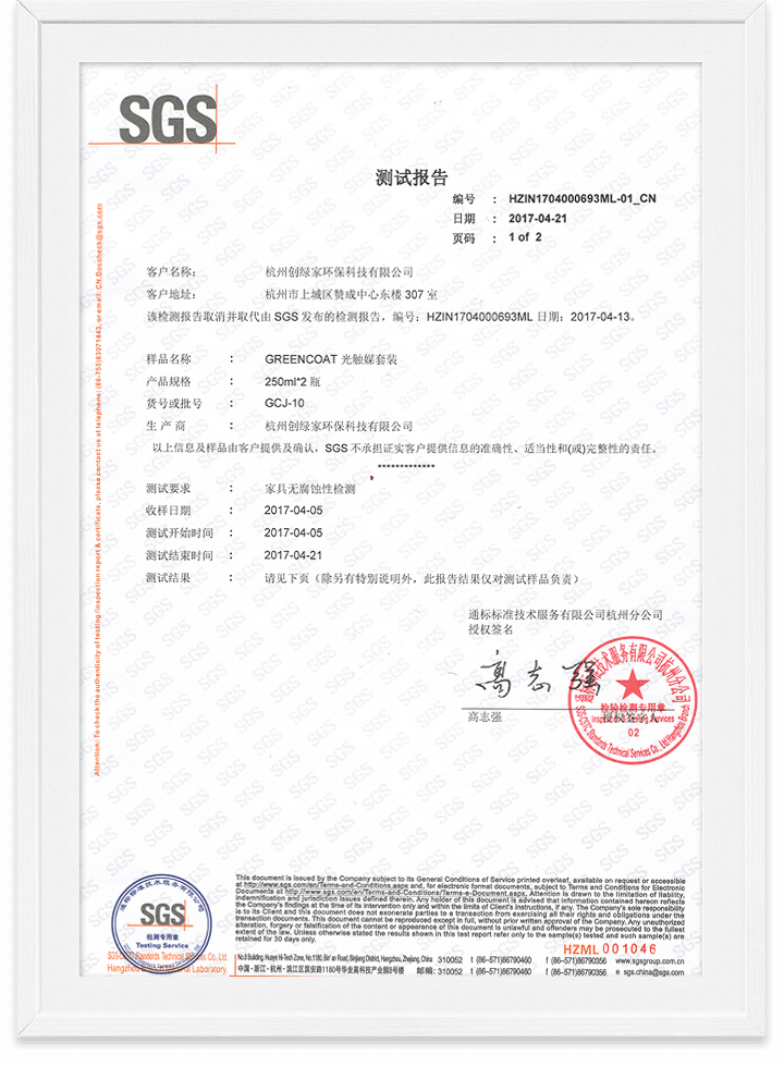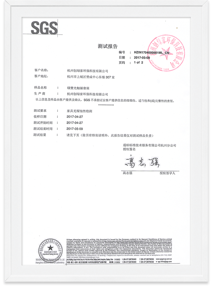 光觸媒家具無(wú)腐蝕性檢測(cè)報(bào)告