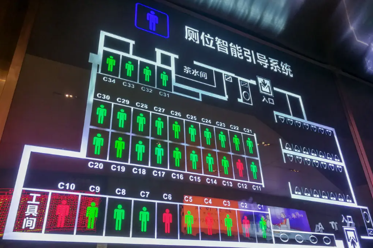智能廁所配備紅色綠色有人無人燈,通過傳感器監測實時人流信息,能夠自動控制廁所內的清潔供應。例如:廁所內有人時供應電、紙巾、水等資源,節約資源的同時也保證了衛生。